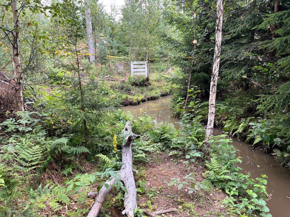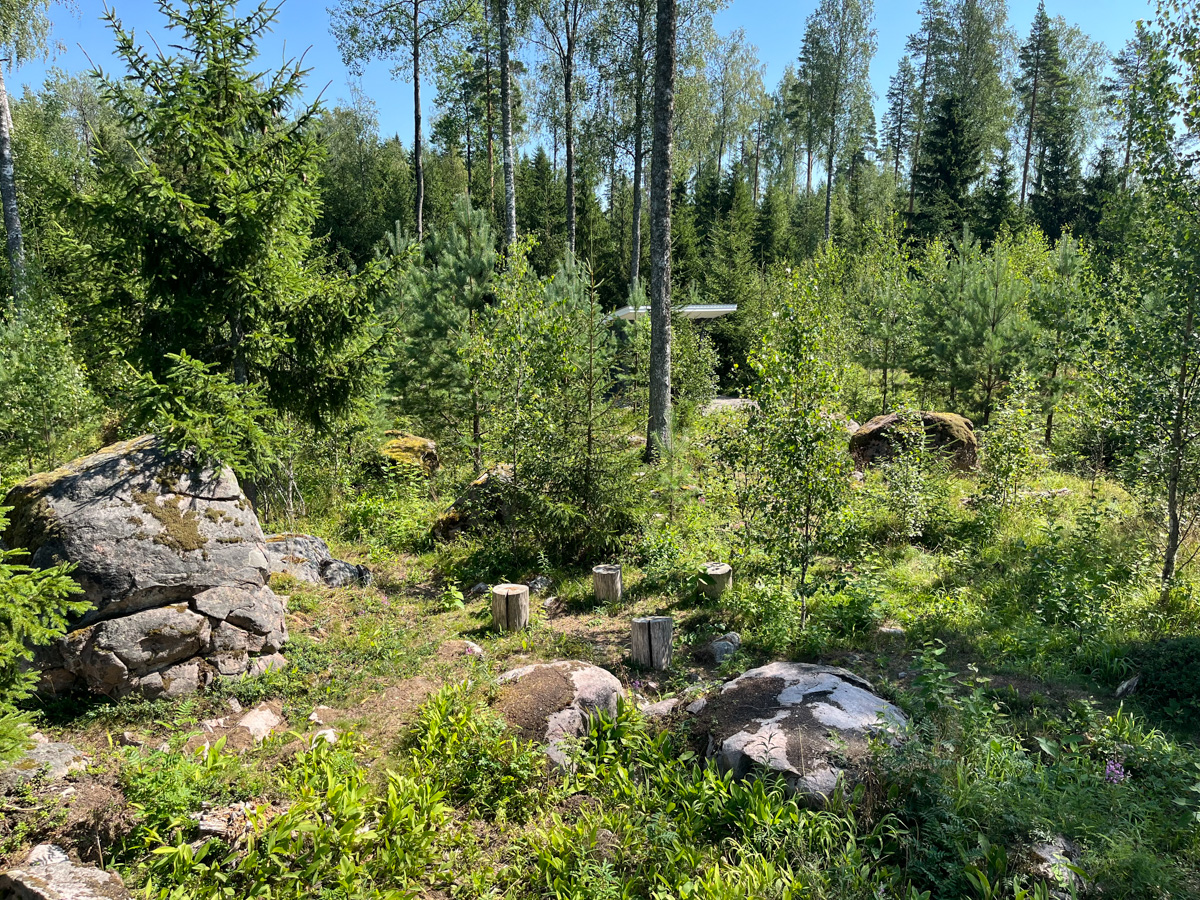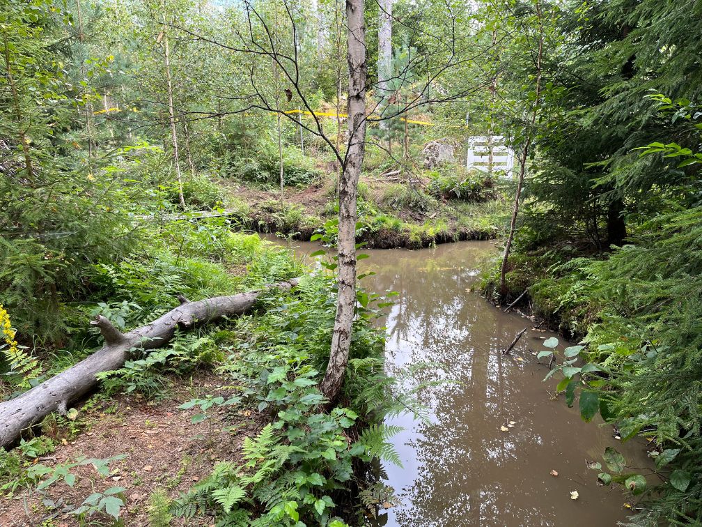- Aluetta halkoo myös metsäoja, mikä tuo virkistävän vesielementin Sinun Koirametsään. Alue on aidattu rakennusaita-elementeillä, joiden isoin silmäkoko on L:10cm K:26cm. Aidan alaosassa on lisäksi sisäpuolella metrin korkuinen lammasaita pienemmällä silmäkoolla, joten pienimmätkin karvakamut pysyvät aidan sisäpuolella.
